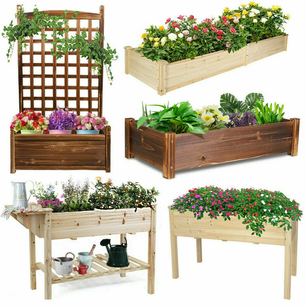 11 Style Wooden Garden Raised Bed Flower Herbs Vegs Growing Box Planter Stand Us Ebay